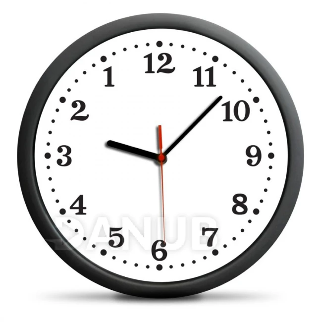Nástěnné hodiny, které zdánlivě měří čas dozadu. Číslice na hodinovém číselníku jsou ukázány v zrcadlovém odrazu a ručičky se pohybují v protisměru.
