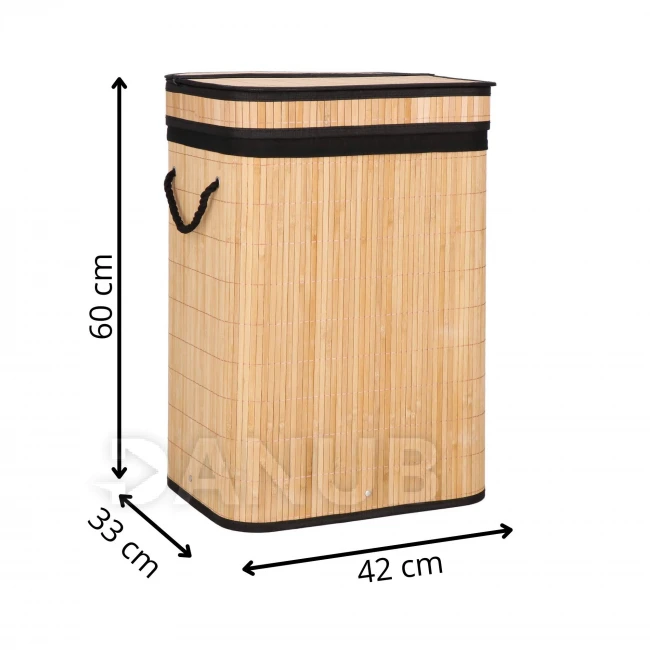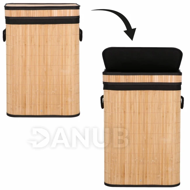 Bambusový koš na prádlo - 72L - hnědá/černá