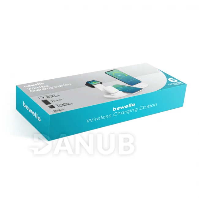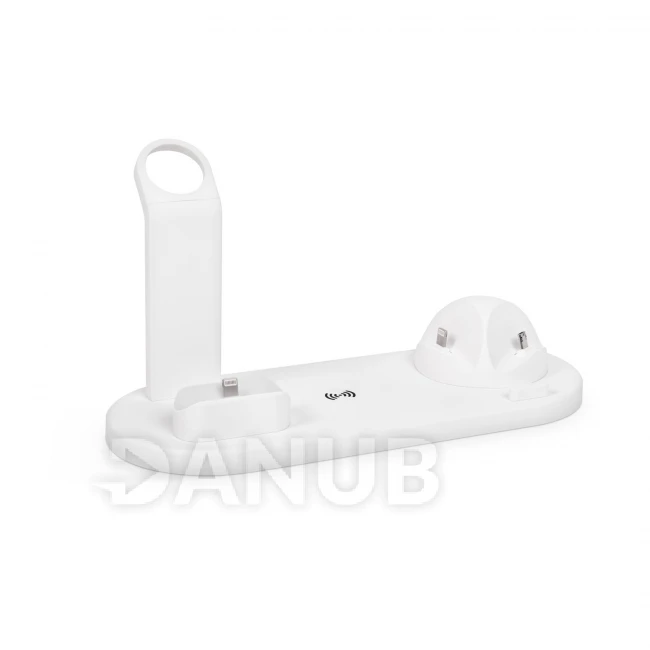 Multifunkční nabíjecí stanice, pomocí které můžete nabíjet jakékoliv novodobé mobilní zariadenie.Prístroj disponuje 6 ks nabíjecími porty, mezi nimiž najdete i funkci bezdrátového nabíjení, takže každý člen rodiny si může najít nejvíce vyhovující způsob nabíjania.Na levé straně je vyhotovený lightning připojení pomocí kterého můžete nabíjet například AirPods sluchátka, pomocí upevňovacích IQ nabíječky můžete nabít váš telefon (pokud disponuje takovou funkcí), ale do stanice můžete jednoduše integrovat i nabíjecí modul pro Apple Watch, díky čemuž můžete nabíjet všechny vaše zařízení na jednom místě a byť naraz.Nabíjacia stanice je vyrobena z plastu s příjemným dotykem, bílý design bude vypadat dobře v každé místnosti.