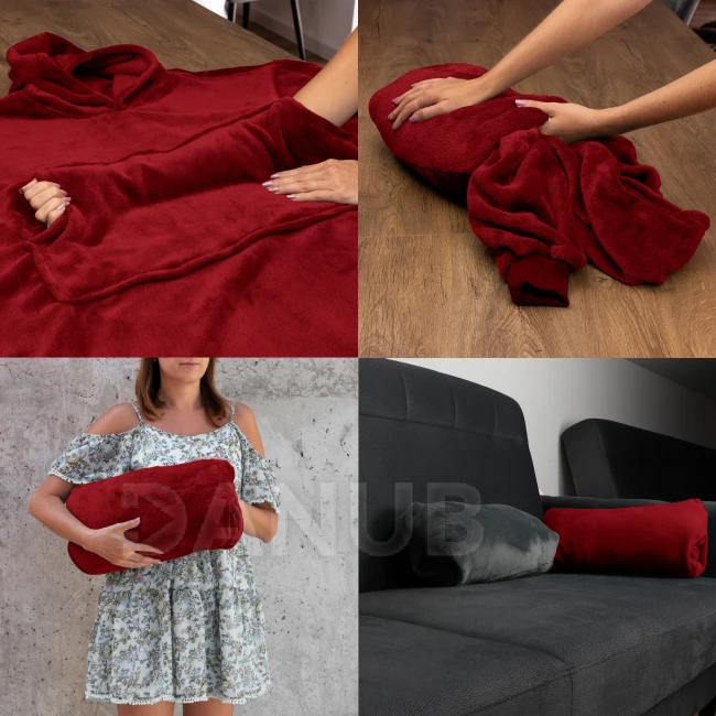 Snadno se změní v polštář. Mikinová deka se dá použít jako župan. Ideální pro všechna roční období (zejména pro podzim a zimu). Výrobek na doma i do exteriéru.