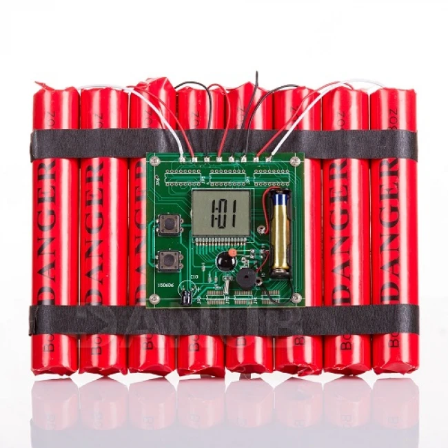 Budík s displejem připojen k dynamitu.