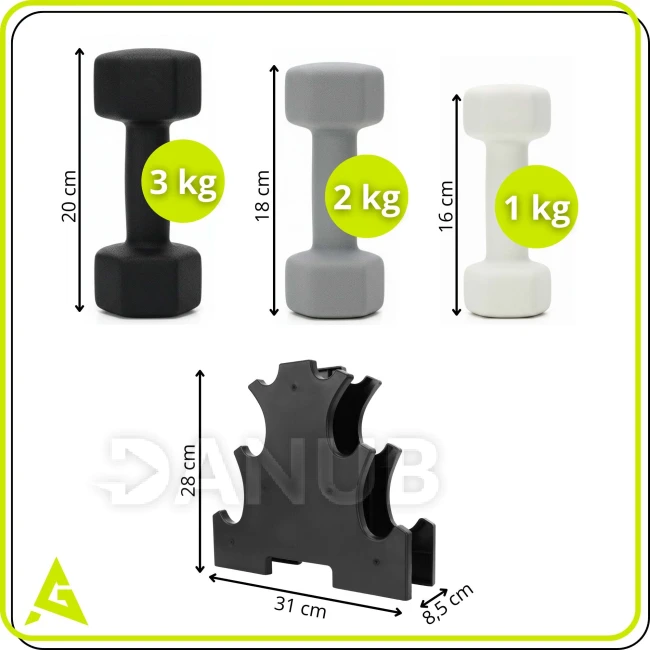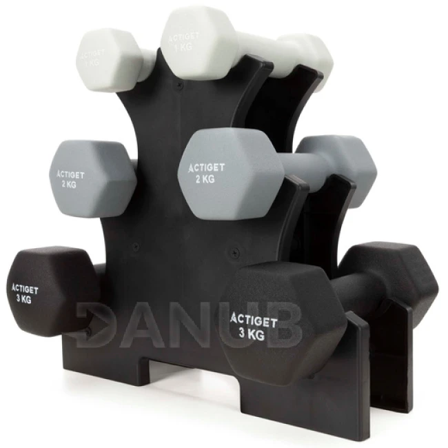 Činky na stojanu - sada 6 ks - závaží 1 kg, 2 kg, 3 kg