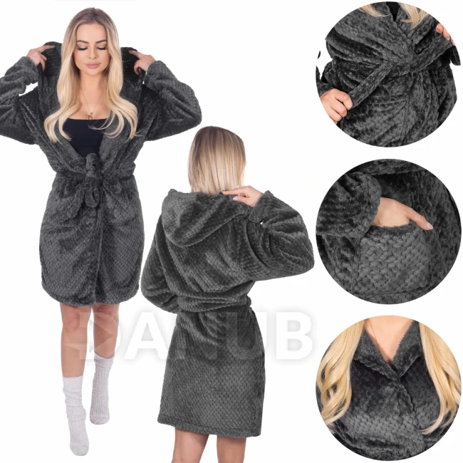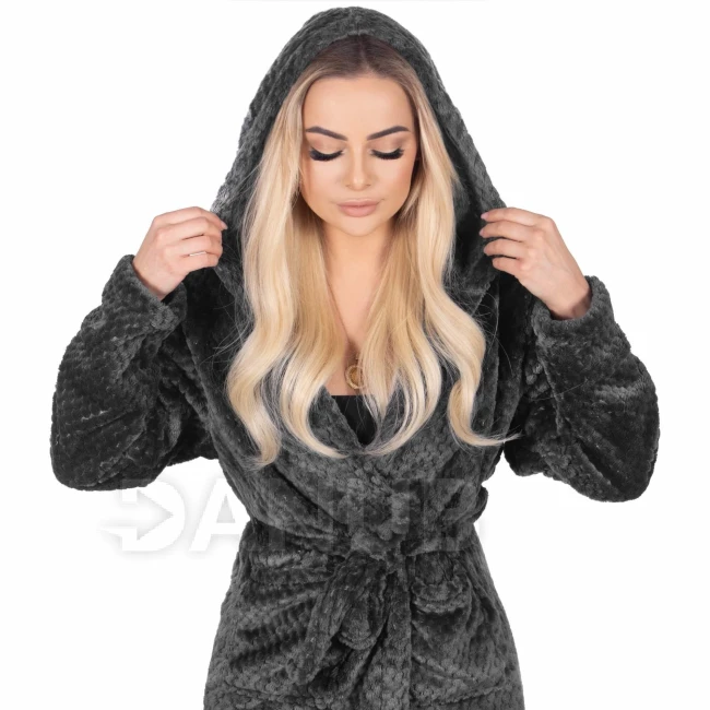 Dámský plyšový župan WARM s kapucí - L/XL - tmavě šedý