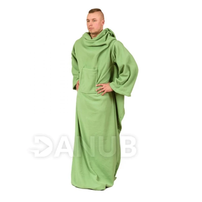 Měkká a teplá deka s rukávy, která má pohodlné otvory na ruce, které neomezují pohyb a funkční malú kapsu např. na dálkový ovladač, telefon, noviny.