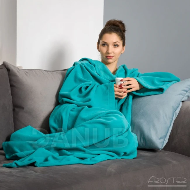 Měkká a teplá deka s rukávy, která má pohodlné otvory na ruce, které neomezují pohyb