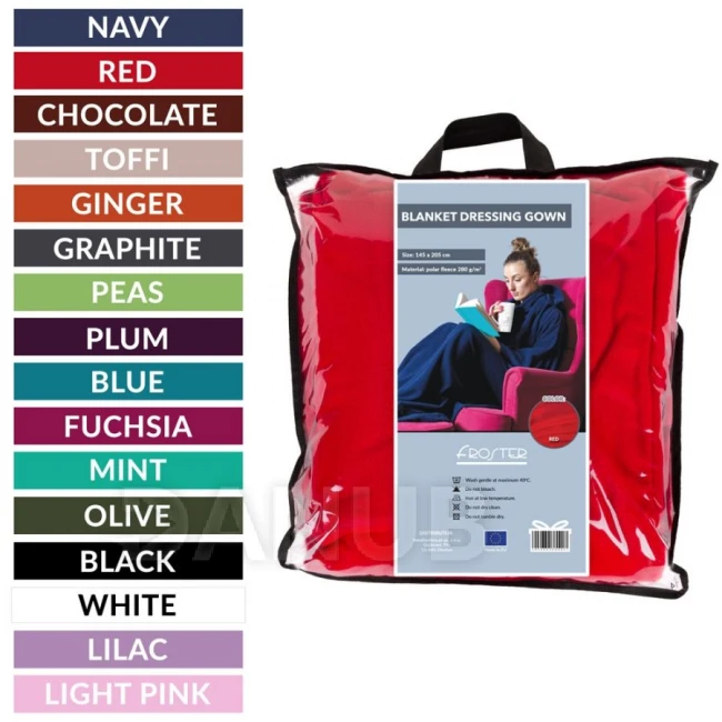 Měkká a teplá deka s rukávy, která má pohodlné otvory na ruce, které neomezují pohy a funkční malú kapsa např. na dálkový ovladač, telefon, noviny