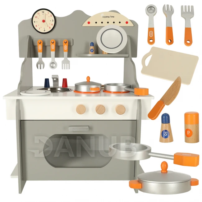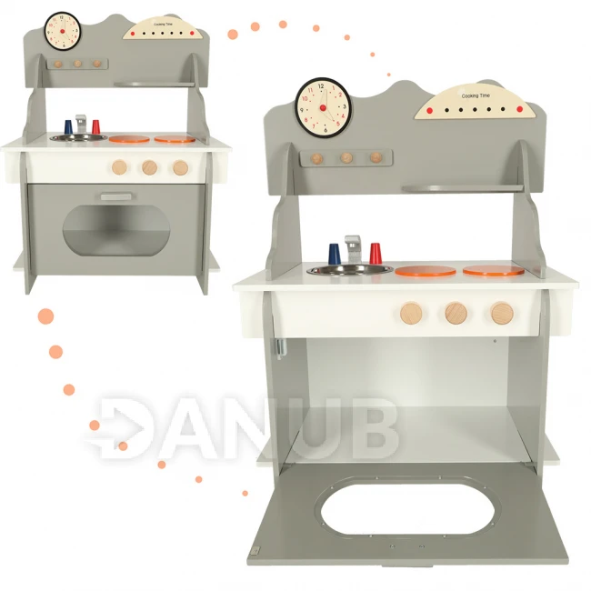 Dřevěná kuchyňka pro děti s velkou troubou - MDF - šedá