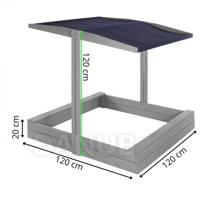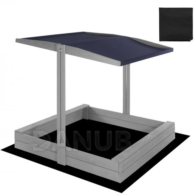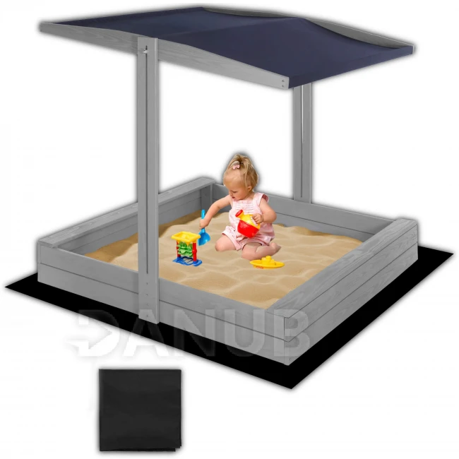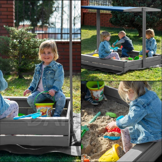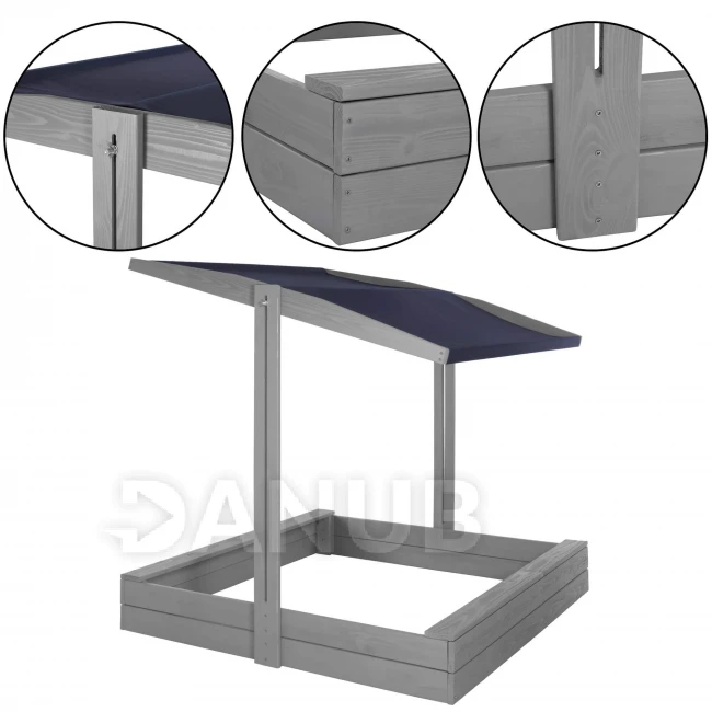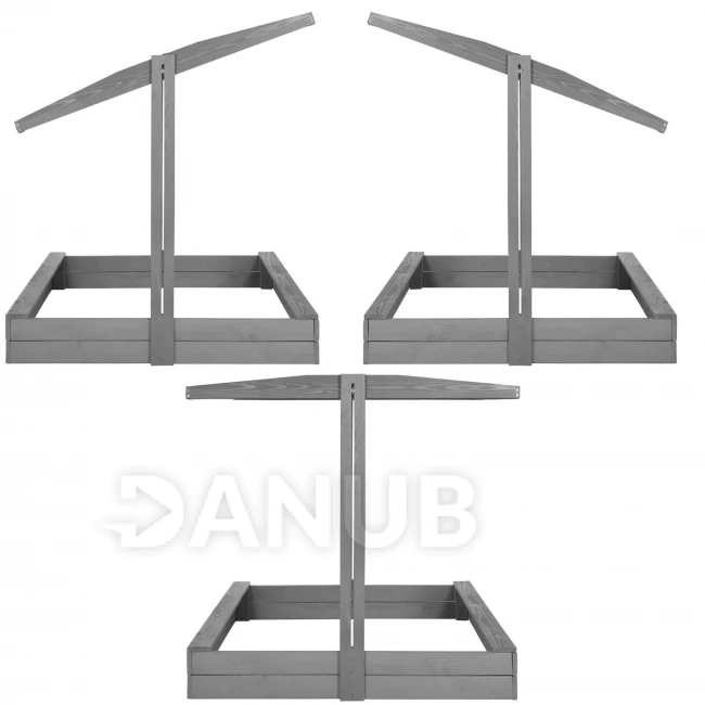 Dřevěné pískoviště se stříškou a lavičkami - 120x120 cm - zavíratelné - šedé