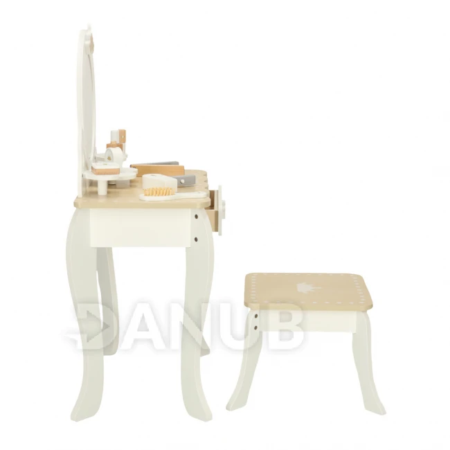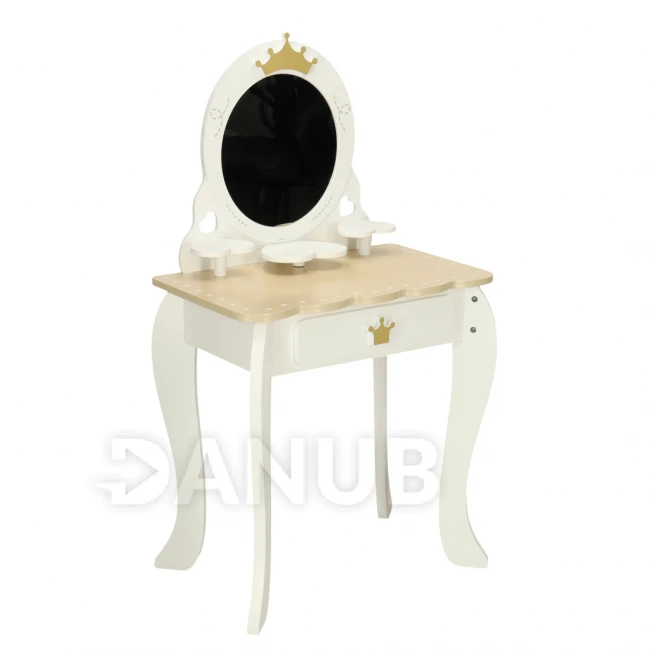 Toaletní stolek je vyroben z kvalitního dřeva, díky čemuž je pevný a bezpečný pro děti.