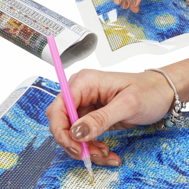 - Aby se diamanty pevněji přilepily na plátno, doporučujeme je po umístění na konkrétní místo jemně přitlačit.