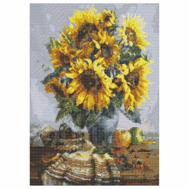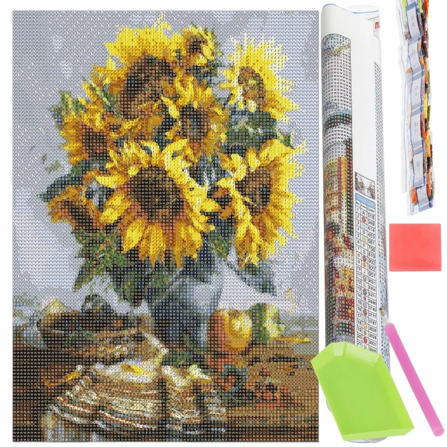 Diamantové malování - výšivka - 30x40 cm - kytice slunečnic