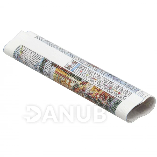 - 1x silné plátno s vytištěným obrázkem znázorňujícím kytici slunečnic a index přiřazující písmena k barvám a barvy k číslům definujícím barvu diamantu