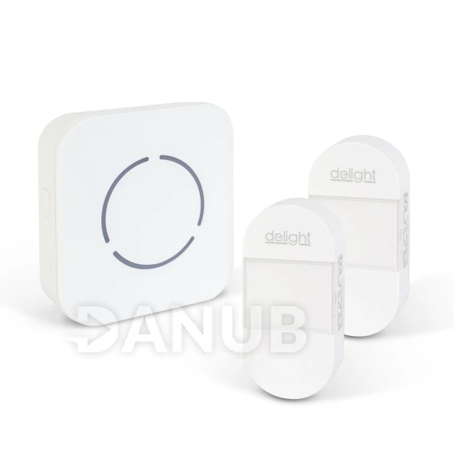 Digitální bezbateriový a bezdrátový zvonek – Kinetický – 2 venkovní jednotky – bílý – modrá LED