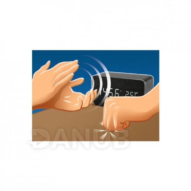 Digitální budík s LED displejem, černé dřevo
