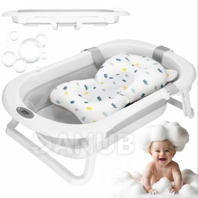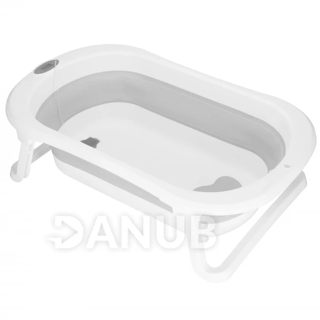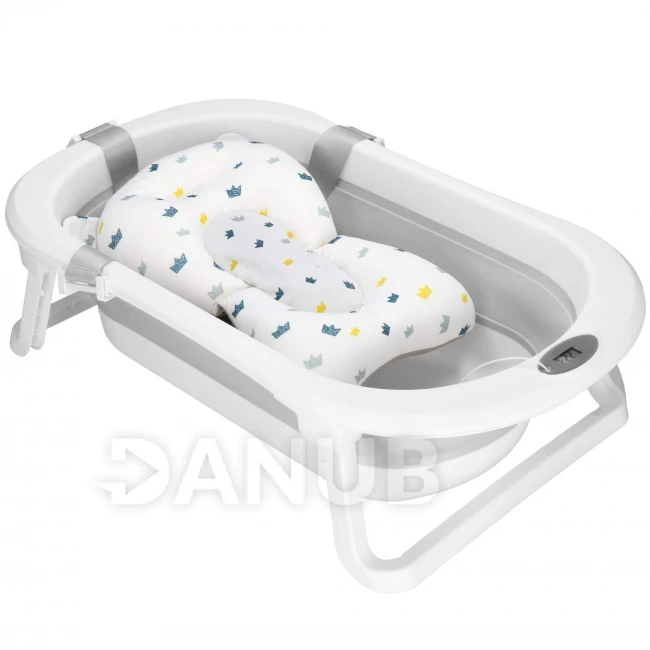 Dětská přenosná silikonová vanička - 40 l - se zátkou, podložkou a teploměrem - bílo-šedá