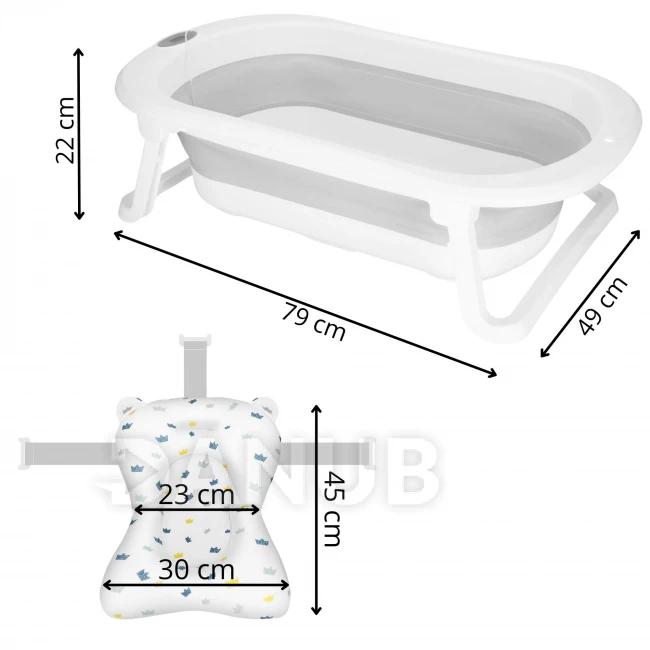 - Rozměry vany ve složeném stavu: 79 x 49 x 9 cm