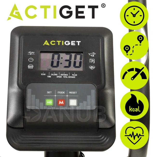 - Tréninkový počítač zobrazuje čas, rychlost, vzdálenost, spálené kalorie, ODO a srdeční frekvenci