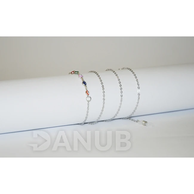 Řetízek na brýle - stříbrný + barevná oka - 75 cm