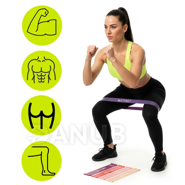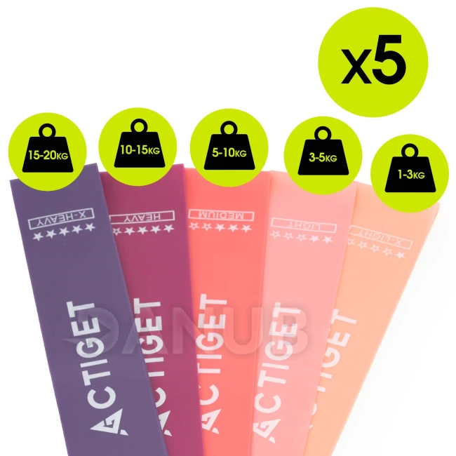Fitness odporové gumy na cvičení - sada 5 ks - odpor 1-20 kg