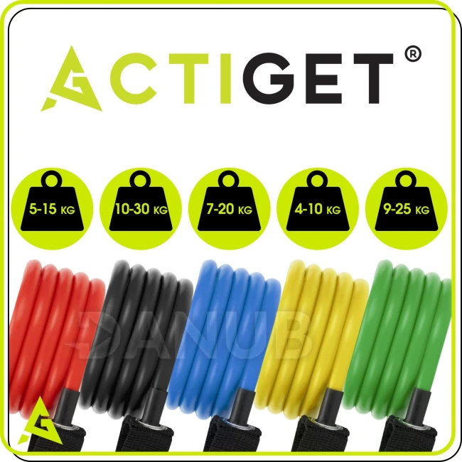 Fitness odporové pryže na cvičení - sada 5 ks - barevné