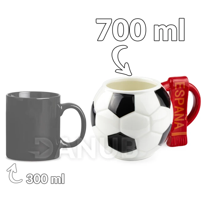 Velký fotbalový hrnek pro fanoušky o objemu XXL 700 ml a podložka ve tvaru míče.