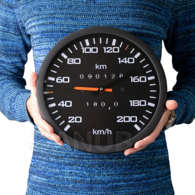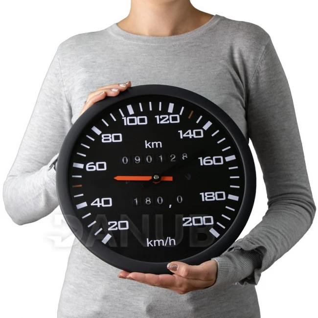 Skvělý dárek pro milovníka aut. Nástěnné hodiny s číselníkem, který vypadá jako v klasickém automobilu. Na číselníku je namísto číselníku stupnice tachometru