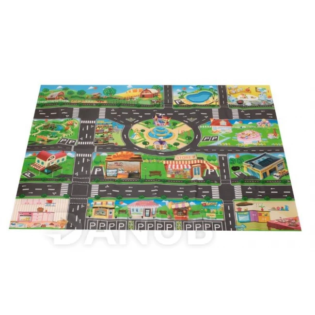 Velká nepromokavá podložka pro děti se vzorem města. Podložka je velmi lehká a praktická, po složení nezabírá mnoho místa.