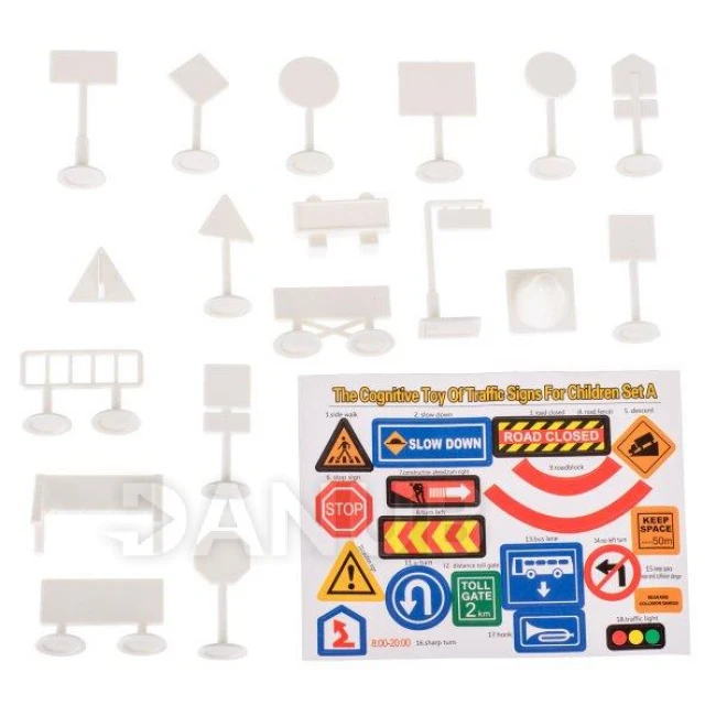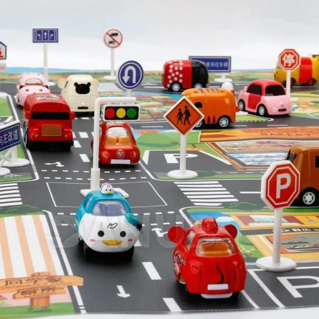 Balení obsahuje také různé dopravní značky, takže si dítě může vytvořit město s vlastními pravidly. Podložka učí dítě základní pravidla provozu.
