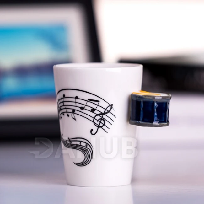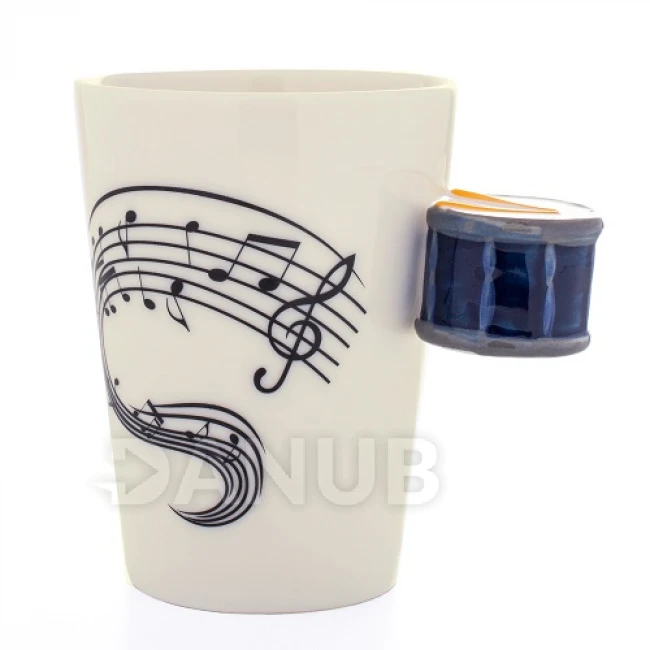 Keramický hrnek s hudebním vzorem. Velmi elegantní hrnek s ouškem ve tvaru hudebního nástroje.