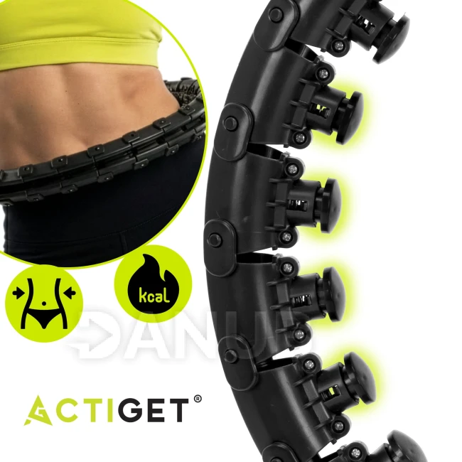 Hula hoop se závažím a výstupky - 24 skládacích prvků - černý