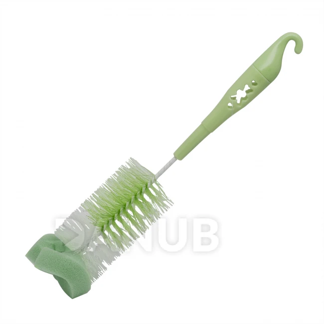 Kartáč na mytí lahví a trubek, ergonomický tvar, zavěsitelná rukojeť, houba na konci.