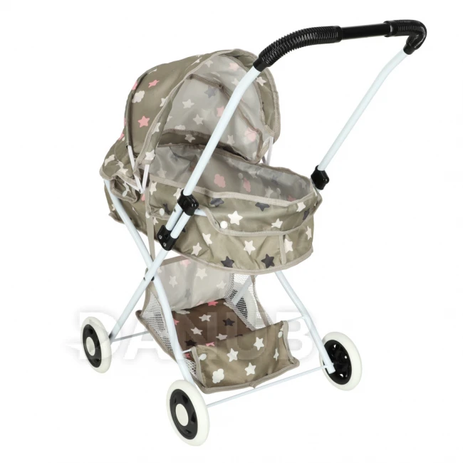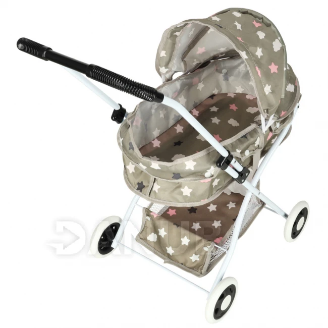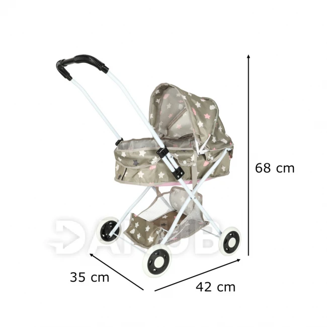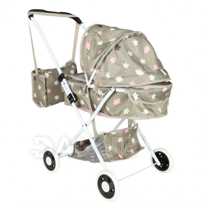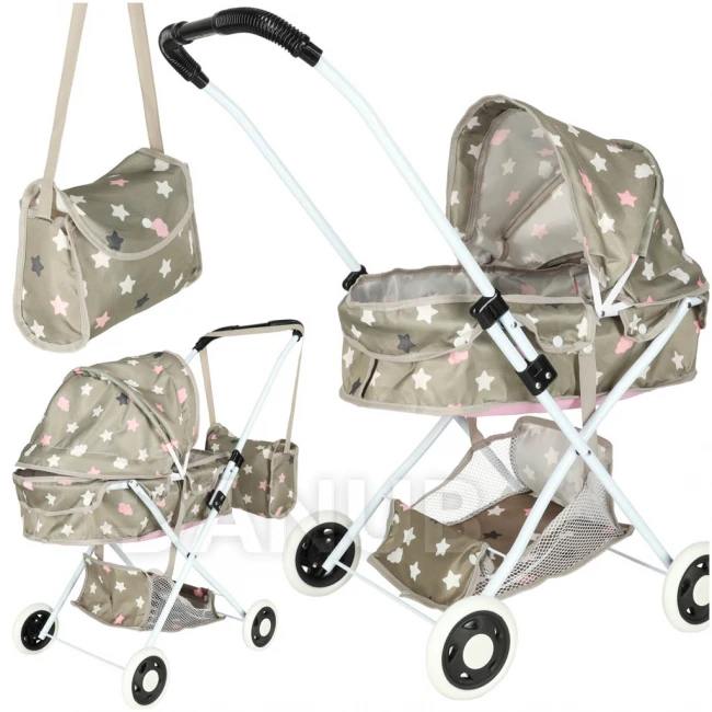 Kočárek pro panenky hluboký + taška - béžově šedý s hvězdičkami
