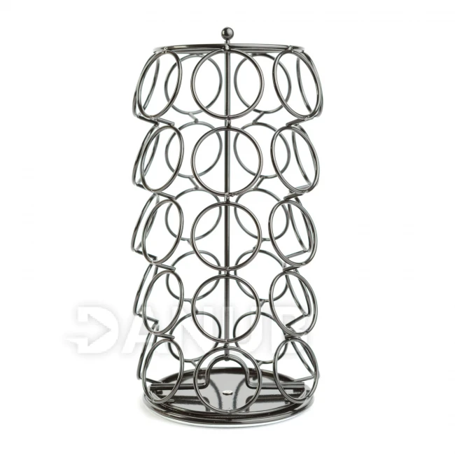 Pokud jste i vy fanouškem kapslí kávy, tento držák na kapsle nesmí chybět ve vaší kuchyni. Různé chutě a intenzity kapslí si můžete roztřídit do 7 sloupců, díky čemuž si každý snadno najde svoji oblíbenou. Díky otočné konstrukci se snadno dostanete ke každé kapsli. Držák má stabilní kovovou konstrukci a jeho černá barva dodává eleganci každé kuchyňské lince.