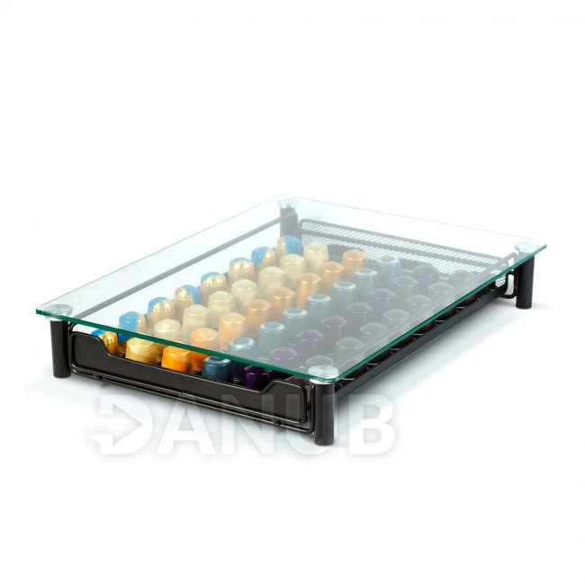 Pokud jste i vy milovníkem kapslí kávy, tento zásobník na kapsle by ve vaší kuchyni rozhodně neměl chybět. Stylové a praktické řešení pro uspořádání Nespresso kapslí. Moderní černý rám a skleněná víčka dodají eleganci každé kuchyni nebo kanceláři. Kovový držák je vhodný pro uložení až 60 kapslí, rozdělených do šesti řad, takže svoji oblíbenou kávu máte vždy po ruce. Díky kompaktním rozměrům se vejde i pod kávovar. Ideální volba pro milovníky kávy pro každodenní použití.