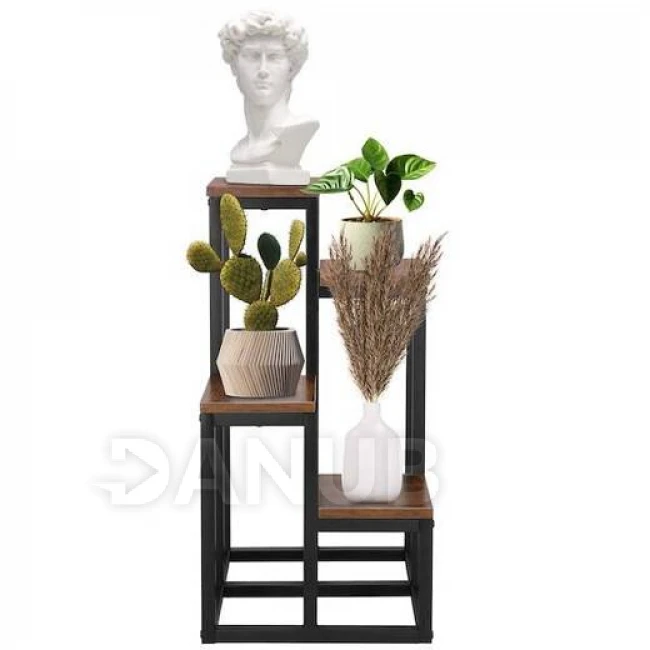 Kovový stojan na květiny se 4 policemi - 67,5 cm - černá/hnědá