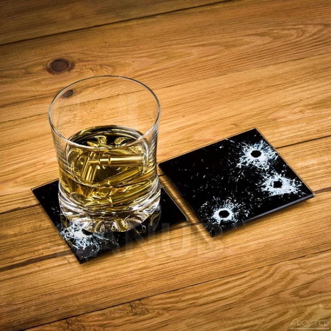 - souprava se skládá z černé matné placatky (300 ml), 2 skleniček whisky (2 x 250 ml), 2 skleněných tácků, 4 kovových nábojů na led, kleští na led a kytarového pouzdra