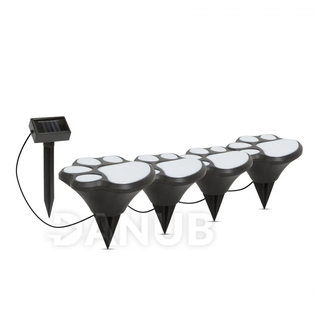 LED solární lampa - otisky psích nohou, zapichovateľné - plast - černá - 360 cm