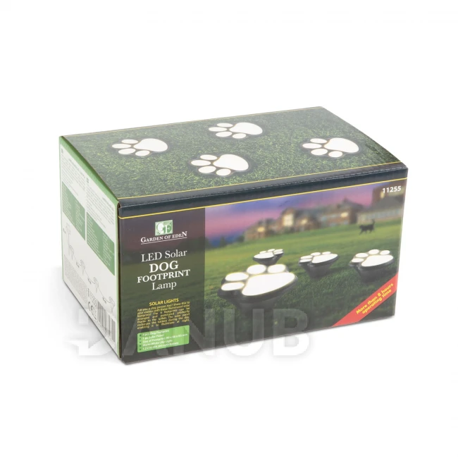 I vy milujte psi? Ukažte to vašim přátelům s těmito svítícími solárními otisky nohou. 4 otisky můžete uložit podle vašeho vkusu díky zapichovacím trnem. Přes solární panel se akumulátor nabije a svítí celou noc.