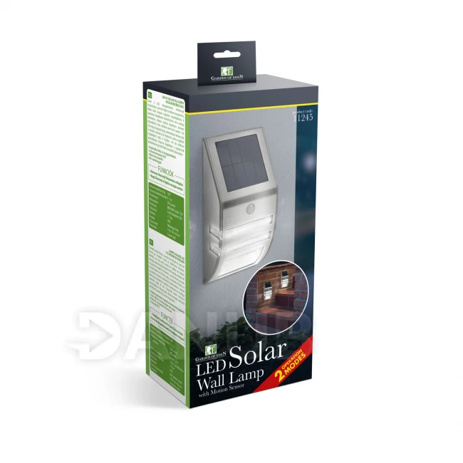 Díky tomuto LED reflektoru s pohybovým senzorem již více nemusíte chodit v tme.Môže být ideální na osvětlení teras nebo vchodov.Vďaka solárnímu provedení nejsou potřebné kabely a také elektroinstalační práce, reflektor můžete jednoduše namontovat na zeď. Ve tmě při nízké úrovni světla svítí 1 LED, po zpozorování pohybu se automaticky zapne i druhý extra silný LED.Svetlo se automaticky vypne po uplynutí 30 sekúnd.Počas dne se díky slunečním paprskům zabudovaný akumulátor opět nabije.