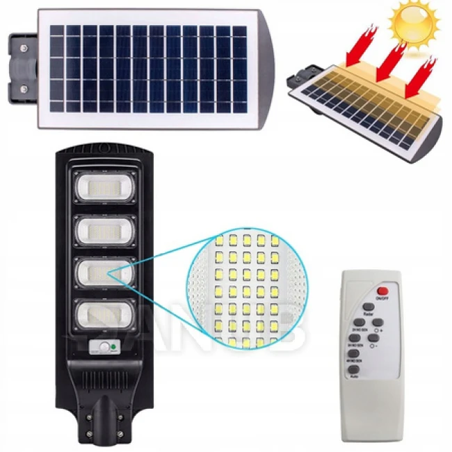 LED solární lampa je osvětlení, které zajistí dobrou viditelnost za všech podmínek. Svítilna vyzařuje světlo o výkonu 1200W a studenou barevnou teplotou 6500K , přičemž poskytuje osvětlení 120 000 lumenů (100lm/W) . Pouliční svítidlo je vybaveno energeticky úspornými LED diodami SMD 5730. Je ideální náhradou za tradiční světelné zdroje. Použití tohoto typu osvětlení zajišťuje nízké náklady na údržbu a žádnou spotřebu elektrické energie.