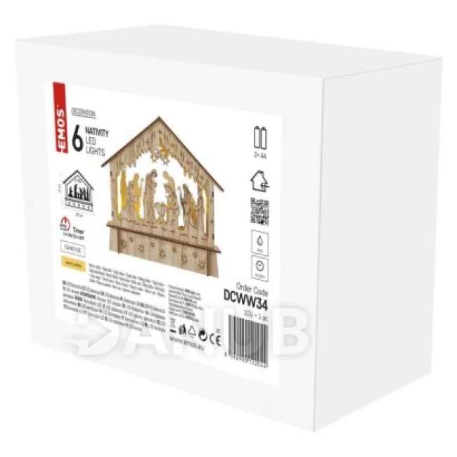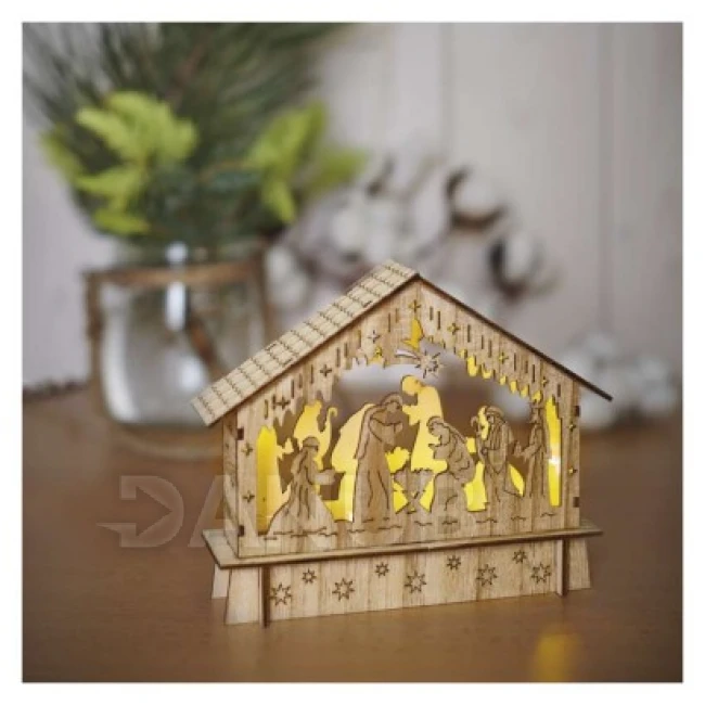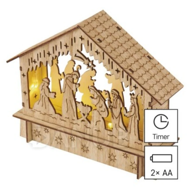 LED vánoční betlém dřevěný, 15 cm, 2x AA, vnitřní, teplá bílá, časovač