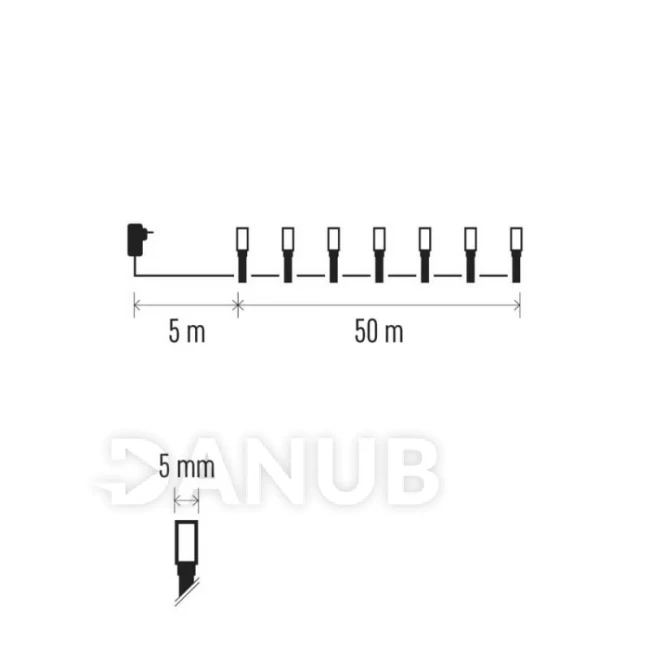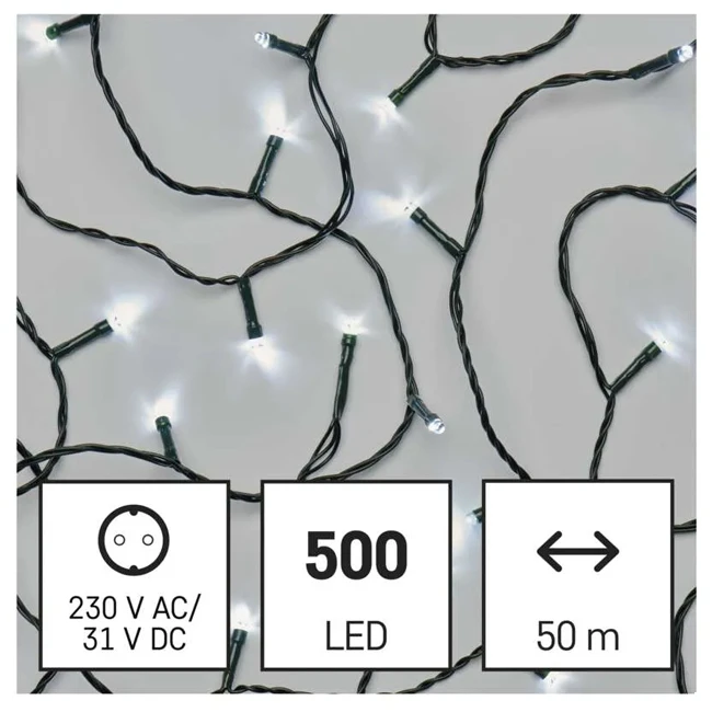 LED vánoční řetěz, 50 m, vnější i vnitřní, studený bílý, programy, časovač