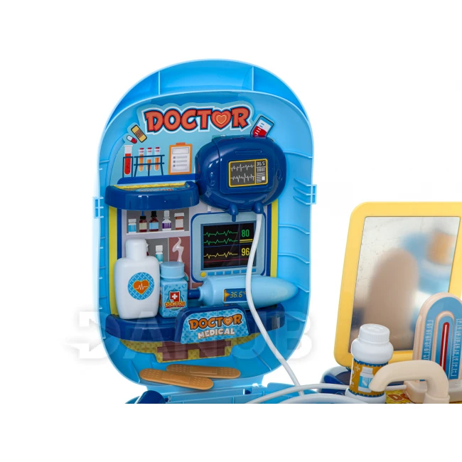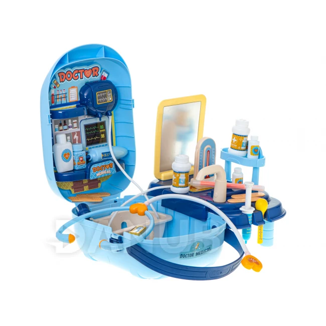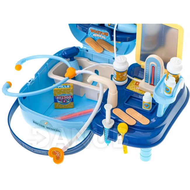 Lékařská sada s příslušenstvím v kufříku. + stůl - 34ks - modrá