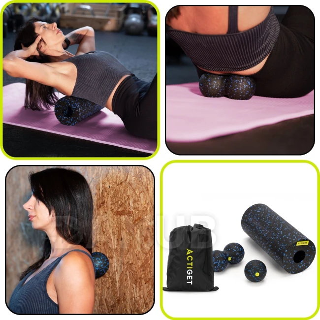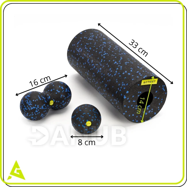 Masážní pěnový válec/roller + masážní sada - černo-modrá