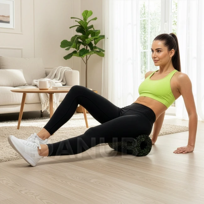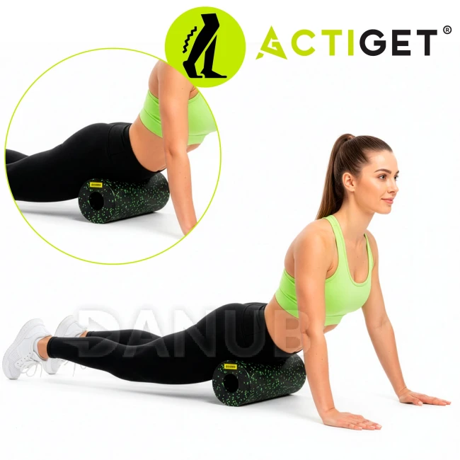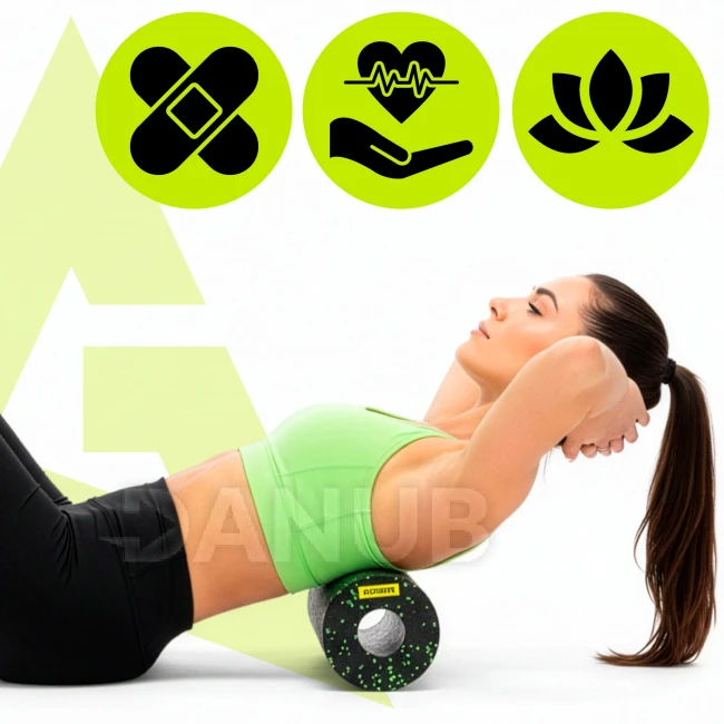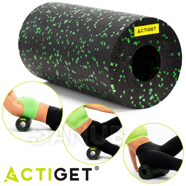 Masážní válec/roller - středně tvrdý pěnový válec - černo-zelený