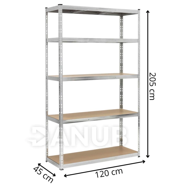 Nastavitelný kovový regál s 5 policemi - 205x120x45 cm - 1000 kg
