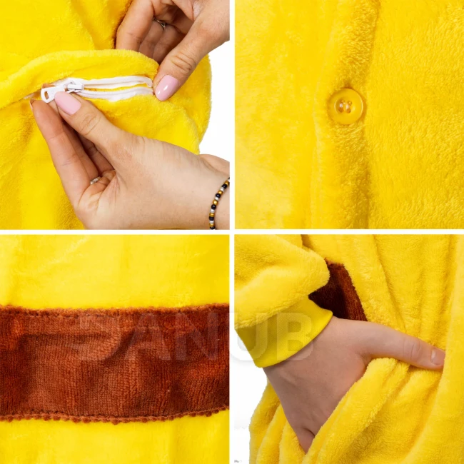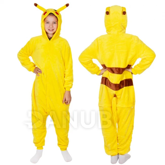 Plyšový overal Kigurumi - vzor pikachu - 130-140 cm