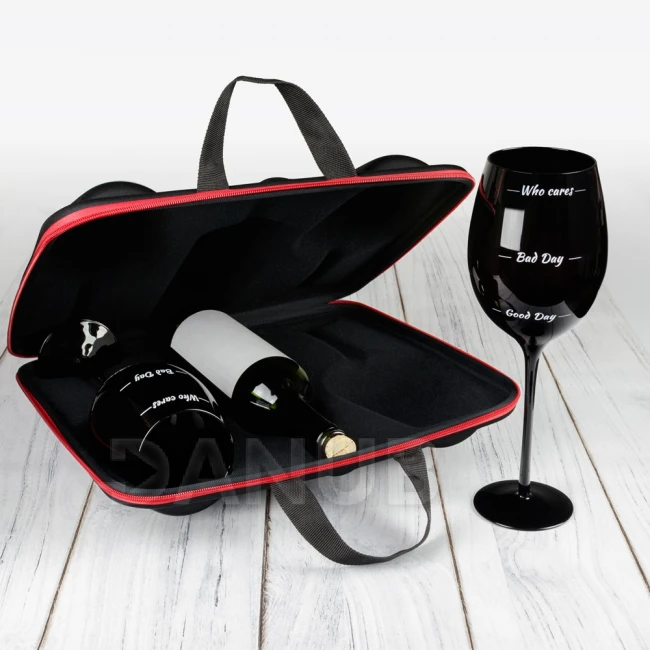 Pouzdro na láhev a sklenice, které lze bezpečně přenášet.