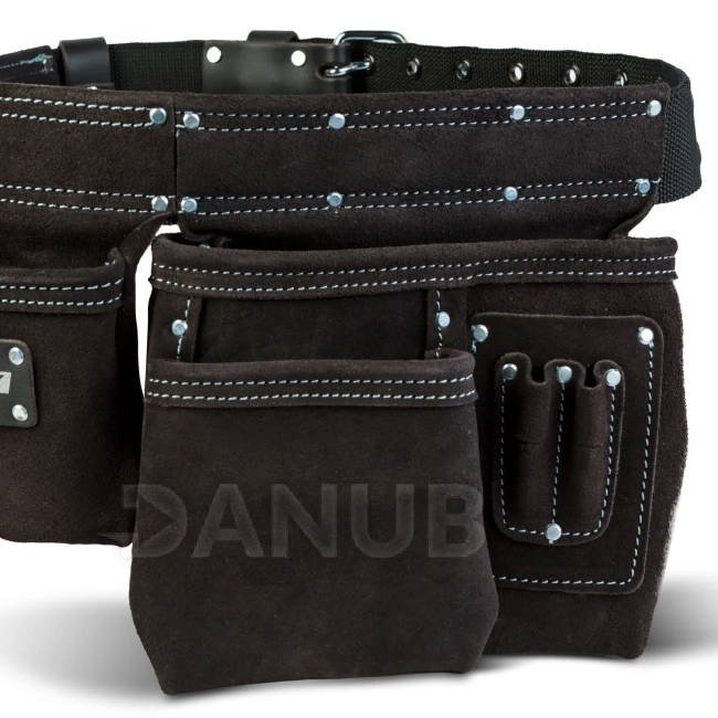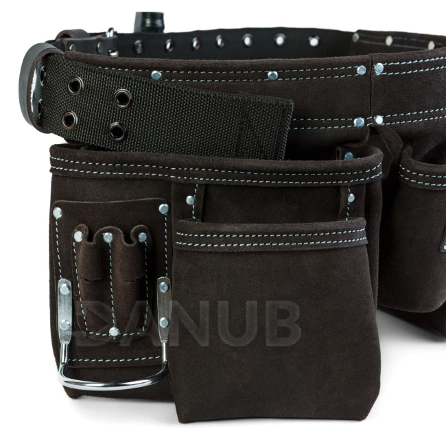 Profesionální kožený pásek na nářadí – 7 kapes, 1 držák na kladivo, 4 držáky na tužky