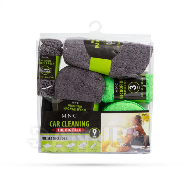 | Rozměry: | utěrka: 245 x 245 mm kotouč: Ø130 mm rukavice: 240 x 170 mm houba: 225 x 120 x 55 mm čistič kol: 290 x 60 x 40 mm |